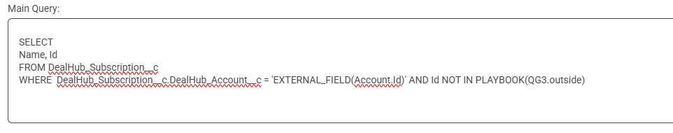 Reference the unique value you want to exclude on the 2nd attempt, for example: QG1.DealHub_Subscription__cId_copy