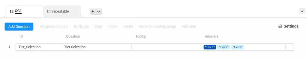 - Create Text question table_selected_Tier [can be hidden]